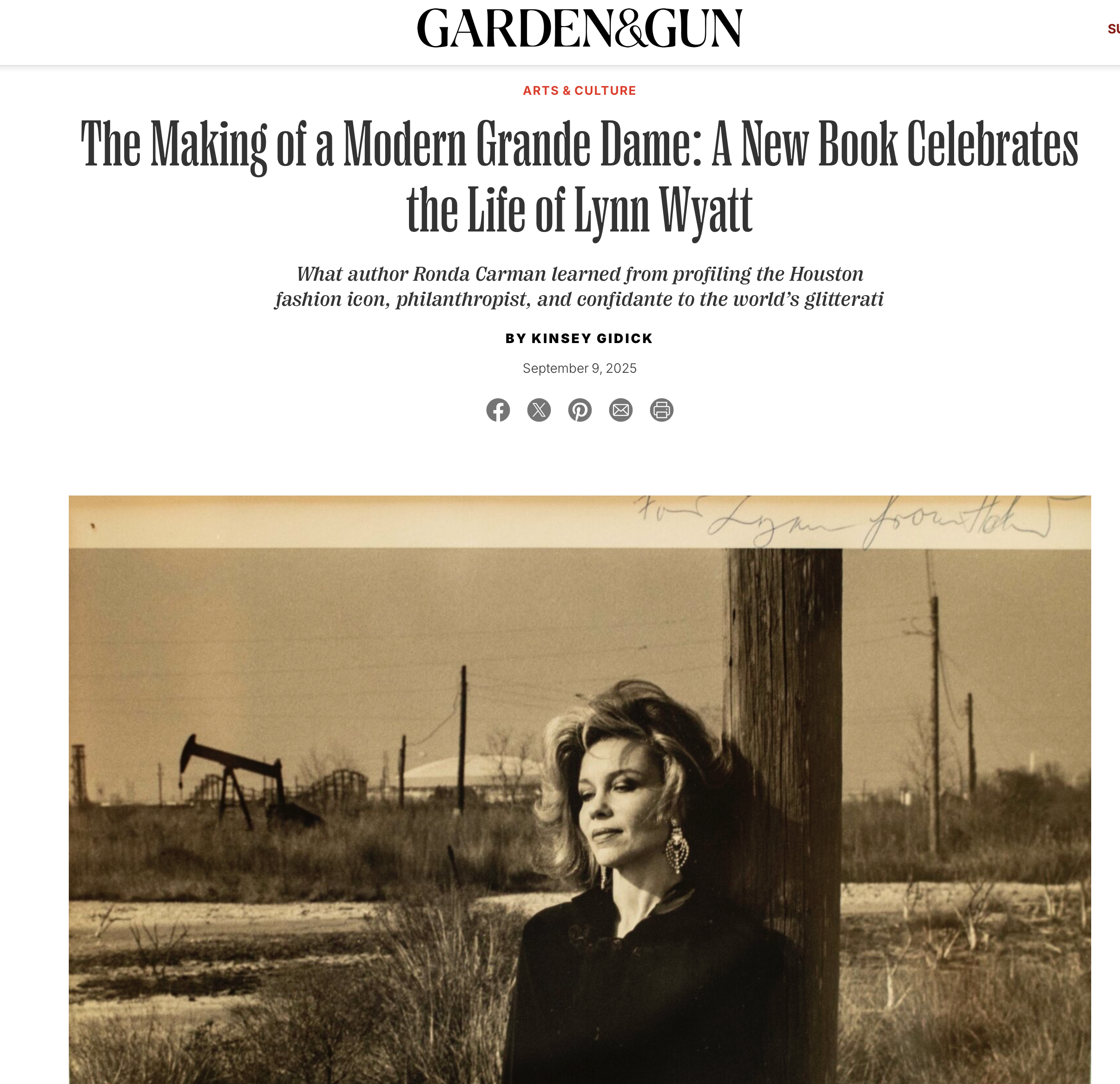 GARDEN & GUN "The Making of a Modern Grande Dame: A New Book Celebrates the Life of Lynn Wyatt"